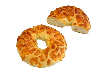 もっちり軽い食感のリングパンにチーズをのせて焼きました。