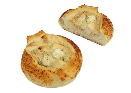 オニオン入りホワイトソースを包みチキンをのせて焼きあげました。