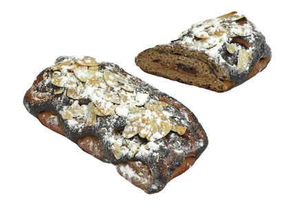 チョコ生地で、チョコフィリングを巻き込みアーモンドをトッピングしました。