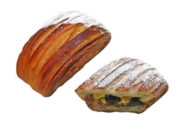バターを折り込んだデニッシュ生地でカスタードとチョコチップを包んで焼きあげました。